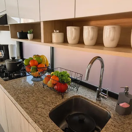 Mejora tu estancia con la cocina completa del apartamento Departamento tranquilo y muy cómodo, amueblada con tetera, nevera y menaje de cocina para tu comodidad. Este apartamento tiene un patio.
